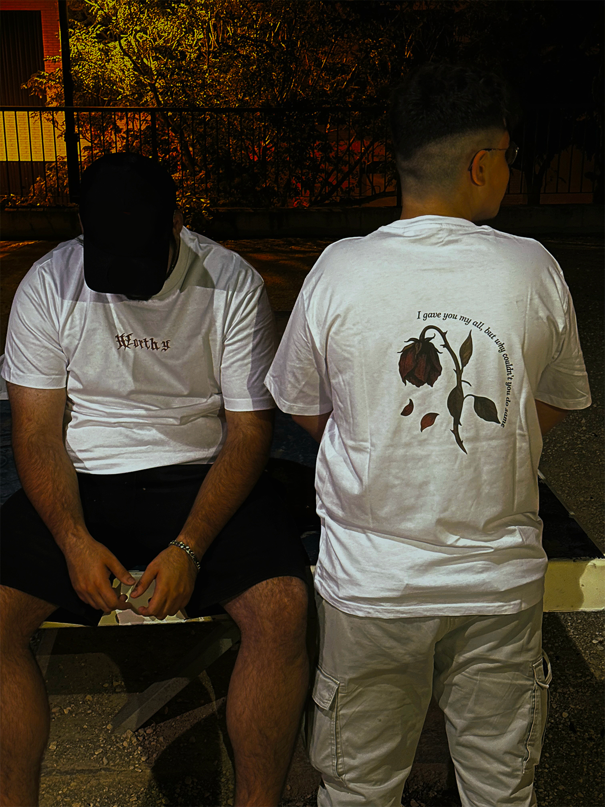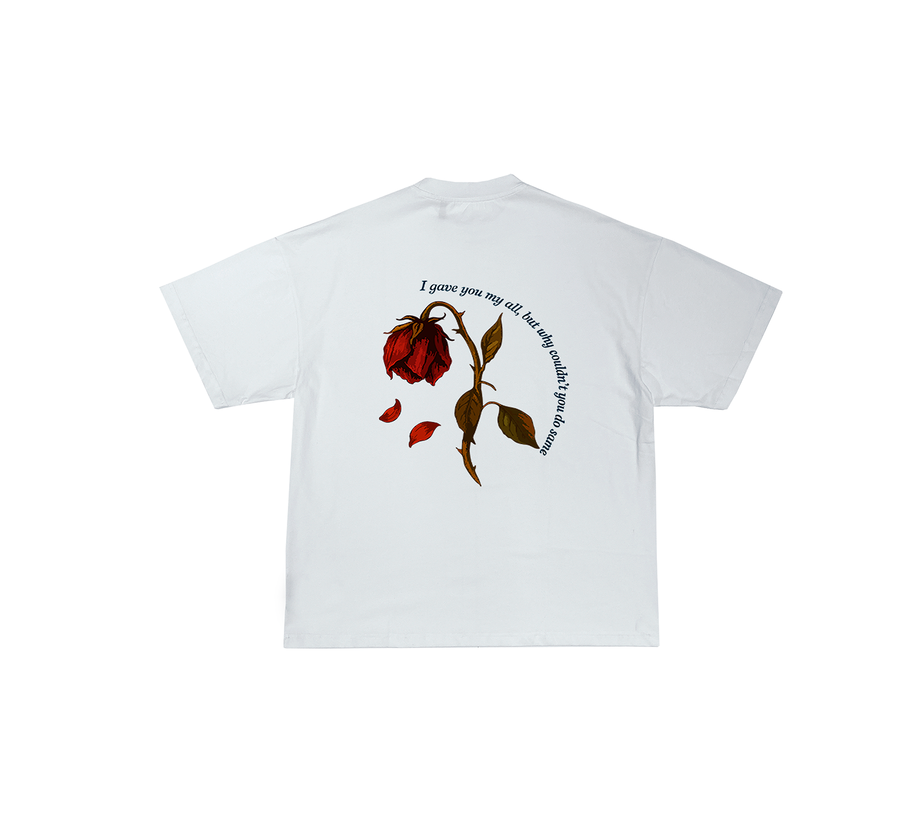 Esta camiseta de la colección Rosa Marchitada representa el lado más crudo de la belleza: lo que ya no florece, pero sigue teniendo valor. El diseño muestra una rosa caída, como símbolo de lo que se perdió… y de lo que aún vive dentro de ti.